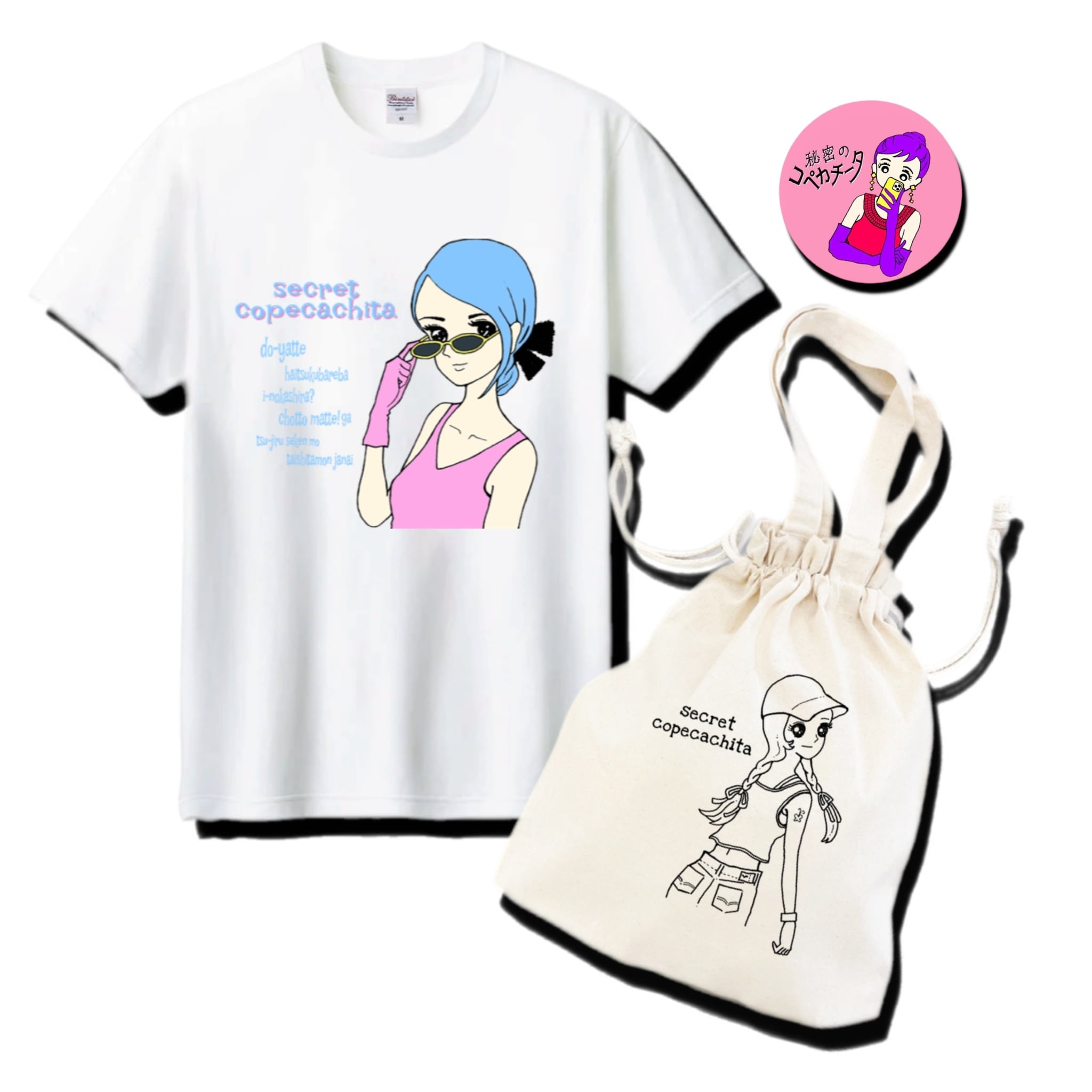 Tシャツ&巾着トート&バッジのセット パステルカラー編